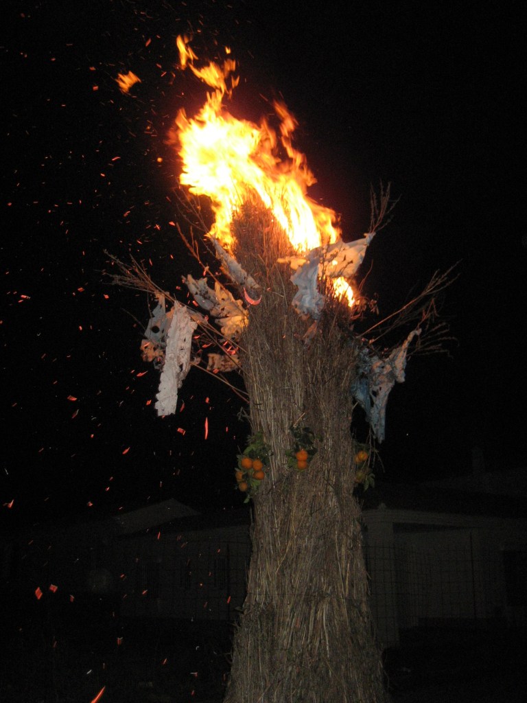 TRADICIÓN POPULAR que consiste en una antorcha gigante que confeccionan los vecinos de algunas calles de El Alosno, el día 8 de diciembre en honor de su patrona la VIRGEN DE GRACIA.